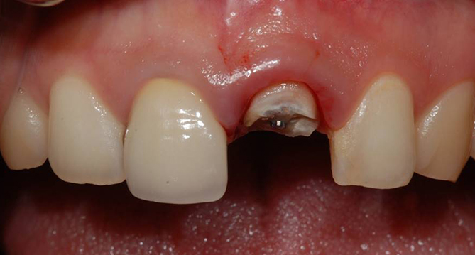외과적 정출술과주조포스트코아를 이용한 전치부 고정성 보철물의 수복 증례