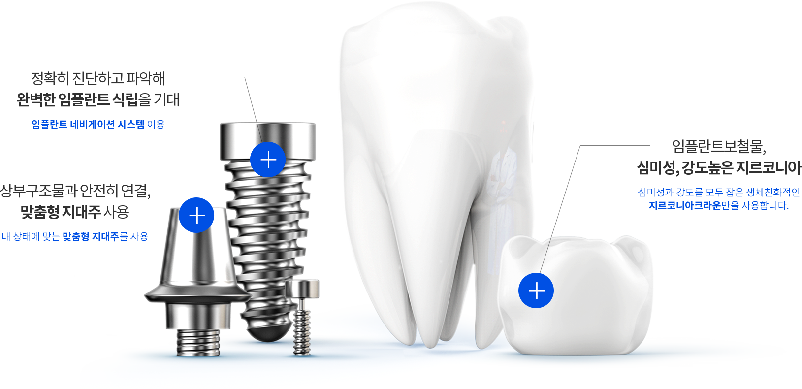 강한 저작력과 고정력, 반영구적 수명, 심미성을 회복할 수있는